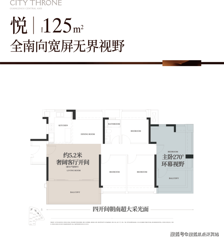 建面125㎡四房,均分别在32层高楼栋,总货量270套左右,让我们一起看看户型图