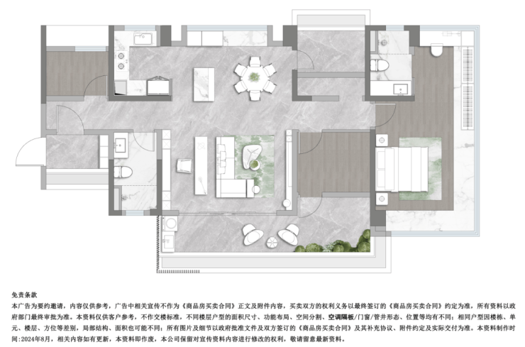 中西分厨+六人圆桌,稀缺南北通透,8m大阳台、31㎡巨厅、独立衣帽间