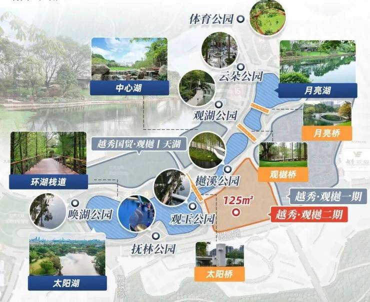 在经过连片的规划与开发之后,占地约5.3万平的月亮湖和太阳湖湖岸线足足达约1.9公里!观樾的每一期地块,都以「环湖向阳」为布局准则,直面水域面积约3.3万㎡太阳湖。足以让湖居从 “少数人的特权”,变成了社区里触手可及的生活底色。