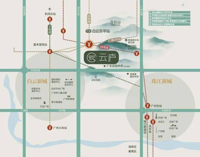 【云庐】坐落于广州龙脉白云山下,是18年来唯一头排山居住宅,占据不可复制的生态资源与城市文脉核心。项目毗邻国宾大道——这条由政府主导打造的11.6公里“精致江山画卷”,串联白云国际会议中心、广州市城市规划展览中心、广东画院、广州体育馆四大城市地标,既承载广州历史中轴的文化底蕴,又直通白云新城核心商圈,形成“出则繁华,入则宁静”的稀缺地段价值。作为白云山生态圈内最后一块低密住宅用地,