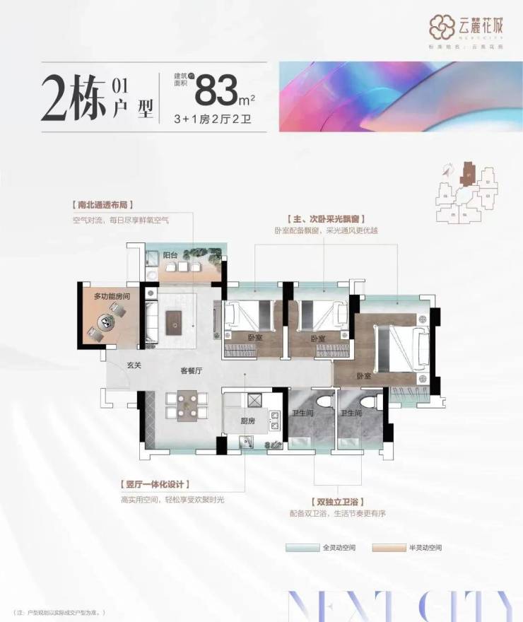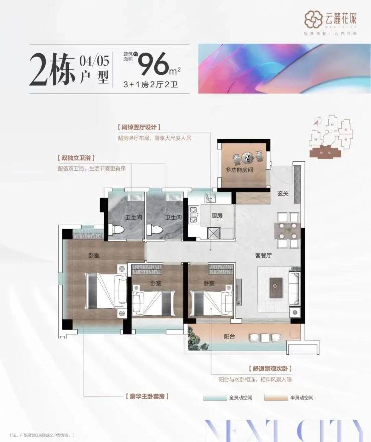云麓花城首推建面约67-96㎡三至四房实用户型,实用面积多房设计,容纳更多生活所需,相伴人生的每一阶段。