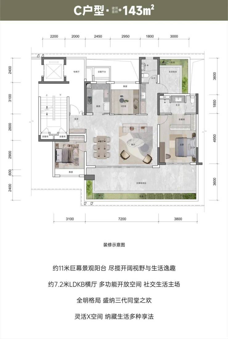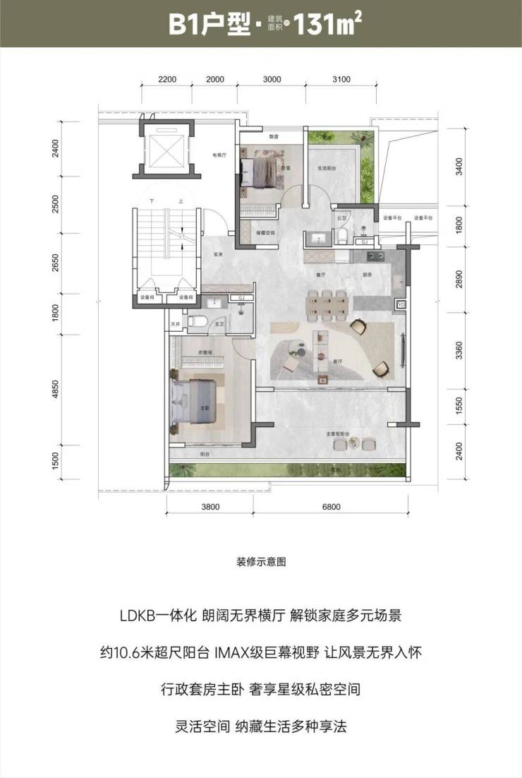【面积区间】建筑面积约110㎡、131㎡、143㎡、195㎡