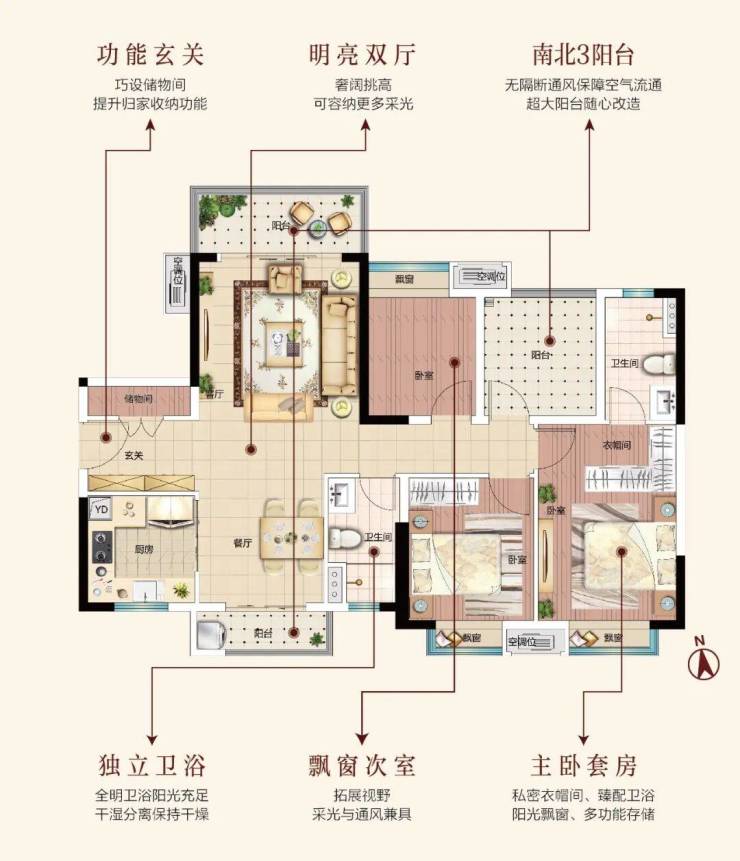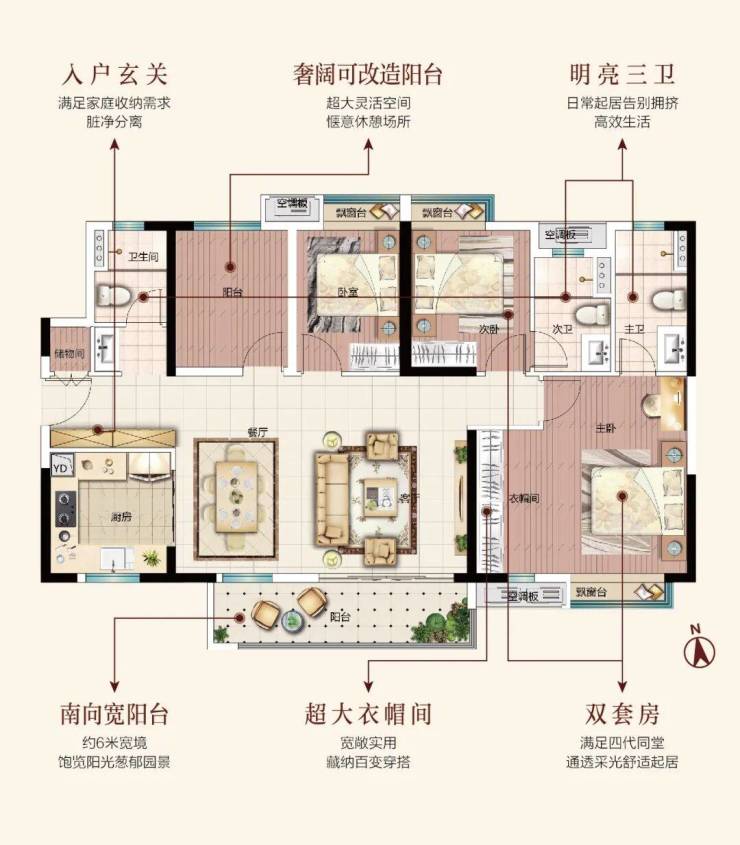 从动静分区、干湿分离、居住动线、采光通透、