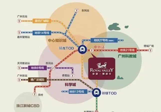 拥有四纵六横的交通网络,堪称广州东核心交通枢纽,是广州罕有的7地铁口上盖别墅物业。地处地铁21号线中新站之上,4站即达天河,1站可到镇龙TOD枢纽。咨询热线:15012627238 蔡经理
