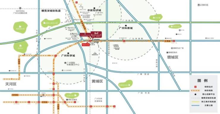侨建·御溪谷地处广深科技走廊起始点的中新知识城南,地铁21号线与穗莞深城轨双线交汇之地,地铁口就在社区红线范围内,目前已全线通车。1站到镇龙,换乘快线2站地铁到天河(大观南路站),地段价值日益彰显。