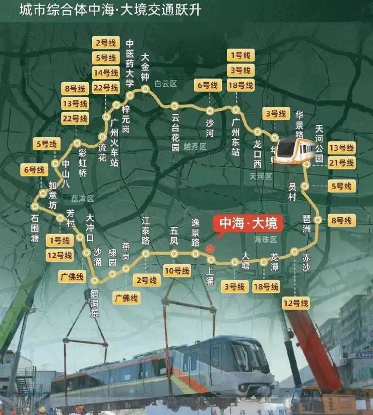 地铁11号线上涌站上盖,已开通11号线是广州首条市区大环线,串联广州中心五区,与广州现有及未来的所有地铁实现换乘,被称为“换乘之王”虹吸全广州的优质资源。