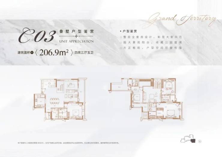 叠墅面积:约165-203㎡