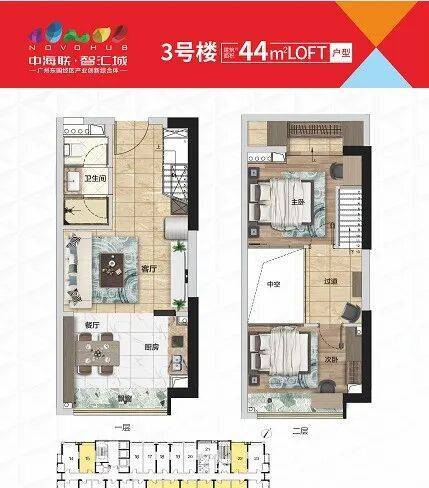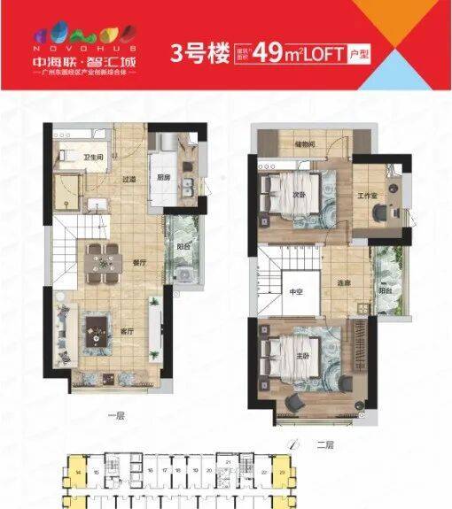 以下为两个热销户型,平层:33-46㎡;复式户型面积段:26-49㎡