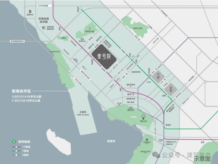 深圳前海,世界级金融中心。项目所处的西乡碧海片区,定位为现代化海滨城区和深圳西部 CAZ 中央活力区,将打造“山—水—海”为主题的生态宜居的核心居住区。直线距离约 3 公里的大铲湾企鹅岛,规划打造“互联网+未来科技城”核心新区。