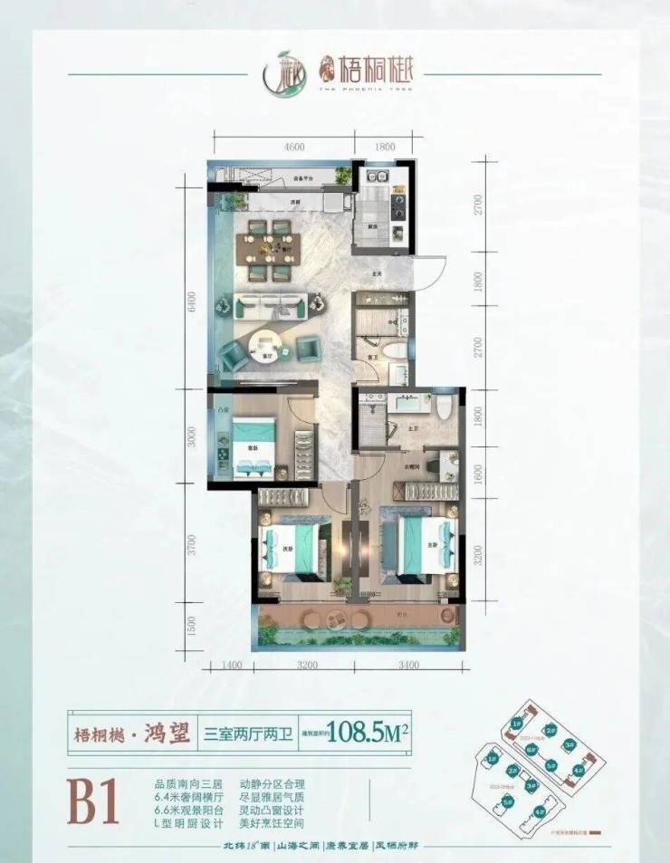 建面约108-133m三房/四房,慢享山海之间宜居康养度假生活,室内空间由HPID堂朝天意高端设计。