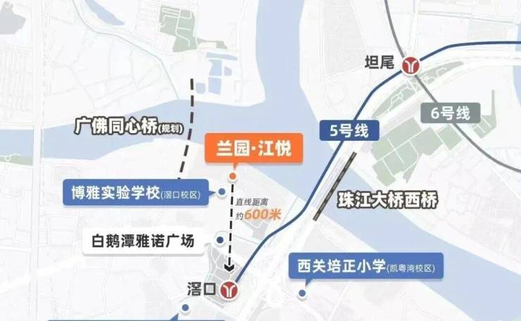 项目位置就在5号线滘口站附近,距离地铁口约1公里,项目一墙之隔,就是星河江缦及二手豪宅珠江鹅潭湾,不管是地铁出行还是自驾出行都十分便利。旁边规划的广佛同心桥,可直通佛山地区;白鹅潭大道未来也可通往广船和医药港等地。