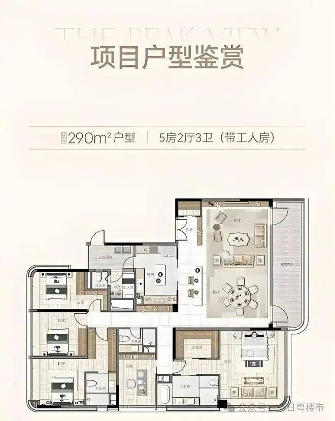 290㎡五房直接是 “壕” 配置,大阳台能摆躺椅晒太阳,主卧像个小套房,有书房有衣帽间,在家办公都超有仪式感。