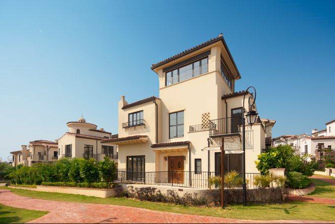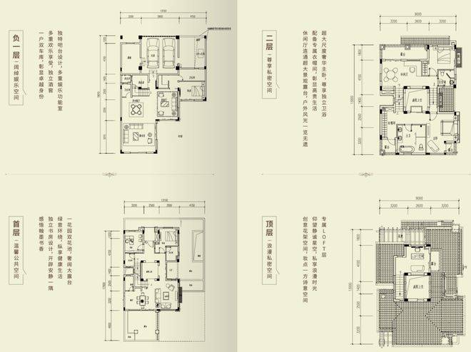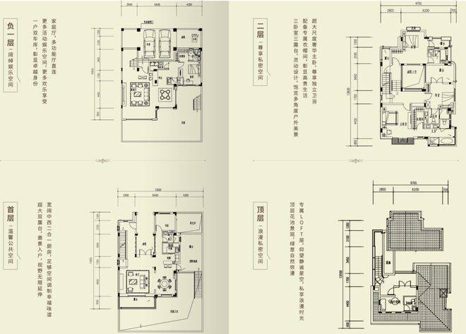 项目主推建面约350-388㎡的六房四厅两车库户型,以Loft设计拓展垂直空间,满足家族全生命周期需求。每户均配备私家温泉入户,2808米岩层裂隙温泉与76℃偏硅酸泉,将“可增值的温泉资产”融入日常。西班牙圣巴巴拉风格建筑,手工凿刻立面如珠宝般璀璨,搭配超大面宽景观阳台,让自然光线与湖山风光无界渗透。户型设计兼顾私密性与社交性,无论是家族聚会还是圈层宴请,皆能从容承载。