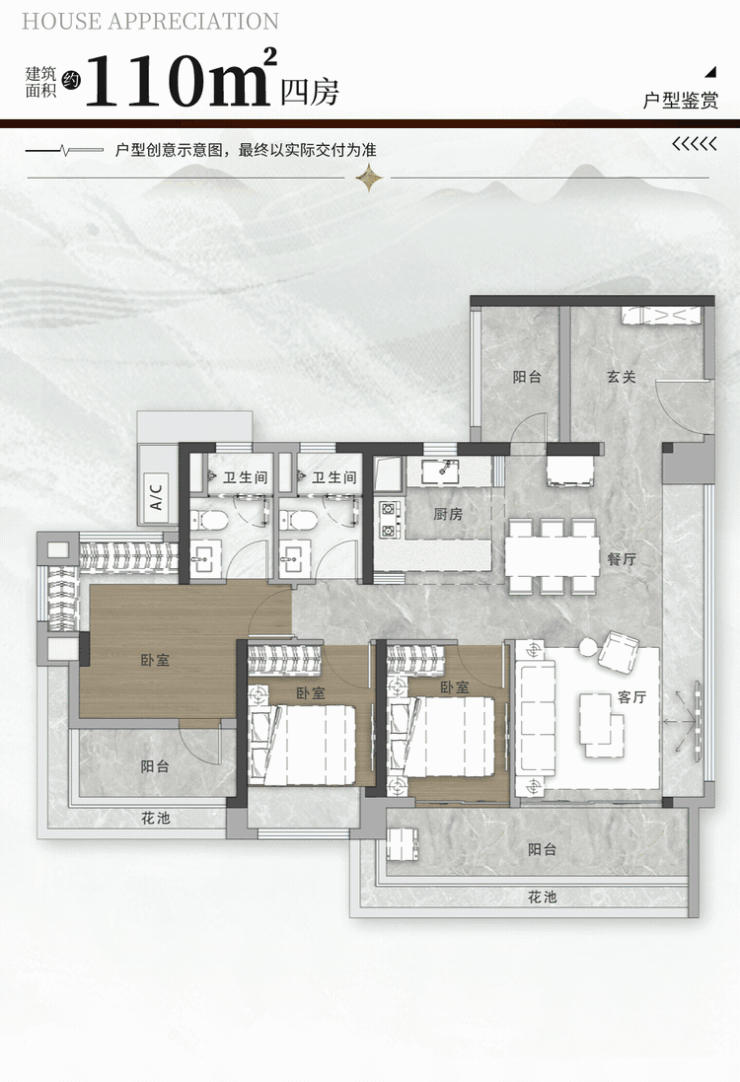 建面约110㎡四房