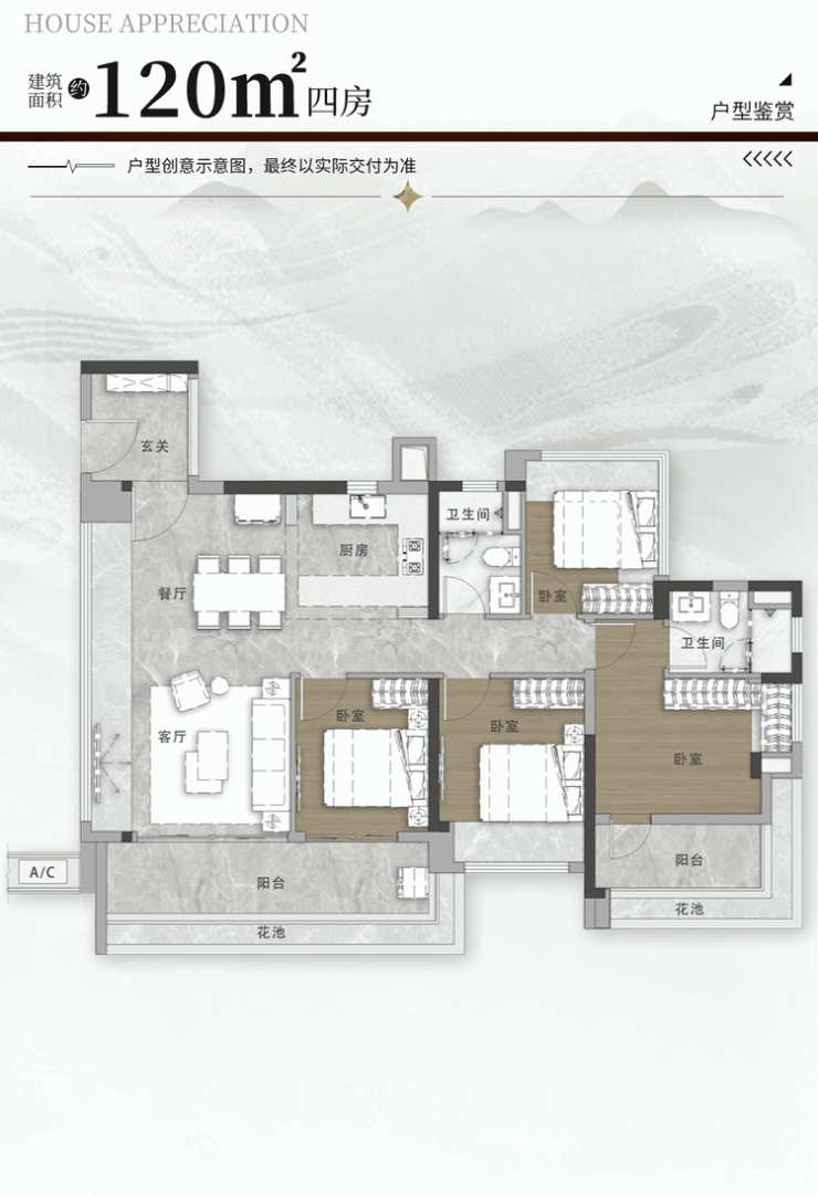 建面约120㎡四房