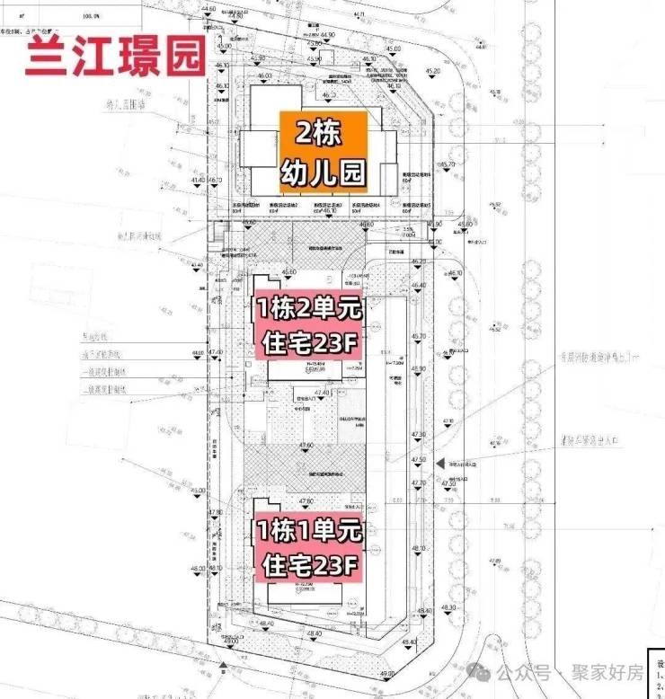 兰江璟园,由兰江集团操盘开发,总占地面积约8.5万㎡,总建筑面积约4万㎡,计容建筑面积约2.65万㎡,容积率3.11,绿化率40.07%,共由2栋总高23F的住宅组成,分别是1栋1/2单元,另外配建1所幼儿园。