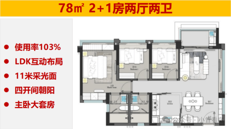 主卧为套房设计,适合人口较多的刚需改善家庭;