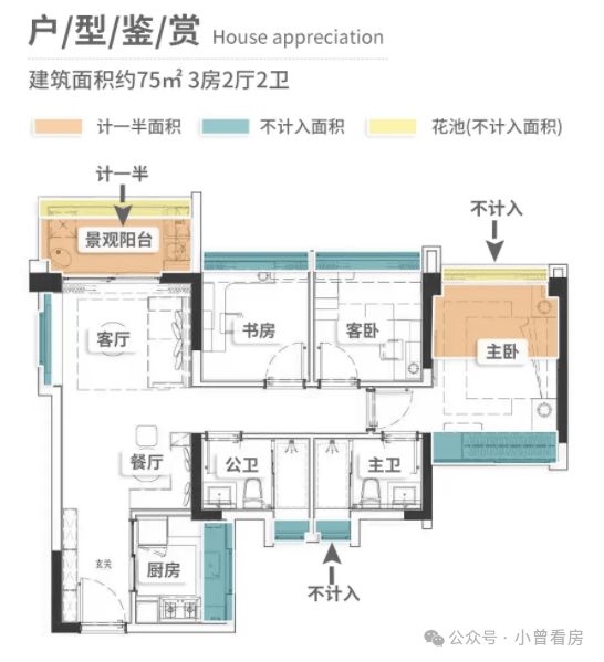 其中建面约75㎡三房两卫户型,总价205万起,小面积实现三房功能