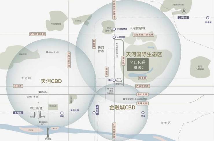 择址天河国际生态区核心,与两大经济引擎天河CBD和金融城CBD,保持约6公里的直线距离。北接沈海高速、环城高速,南接广园快速路、华南快速路,快速通达各大商圈。
