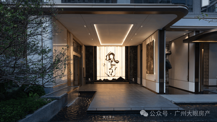 5栋的「云栖·西派艺术馆」 雕塑长廊与立体庭院串联,巧妙地陈设“风”字的金属雕塑、形似层峰叠峦的艺术壁画、融入白云山沉淀的绿宝石。