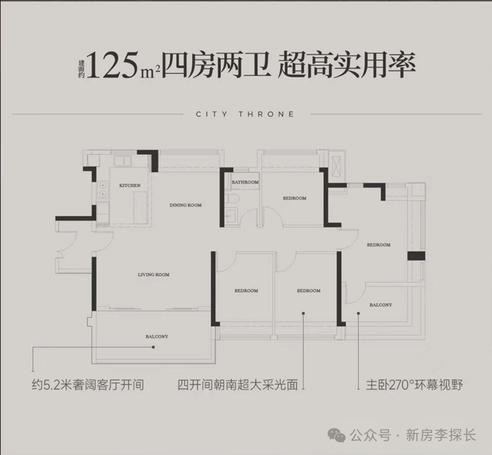 【建面约125㎡ 四室两厅两卫 超高实用率】