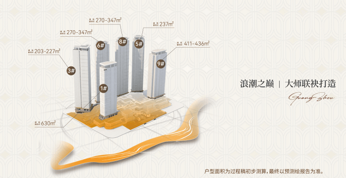 保利南方面粉厂项目官方最新规划布局和产品面积户型图出炉!全盘仅规划建设6栋35-50层高的超高层江景住宅,整个项目采用前高后低(南低北高)的阶梯式半围合布局,使得每一户都能拥有南向望江的绝美景观。