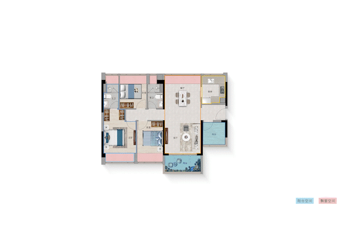 建面约106m² 百变灵动户型,以对生活的 升级 考究,打造容纳百变的阔绰布局。