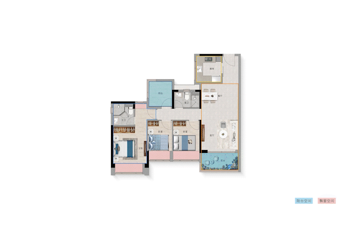 约104㎡ 南北对流户型, 以对生活的 深刻 洞察,打造全明通透的理想格局。
