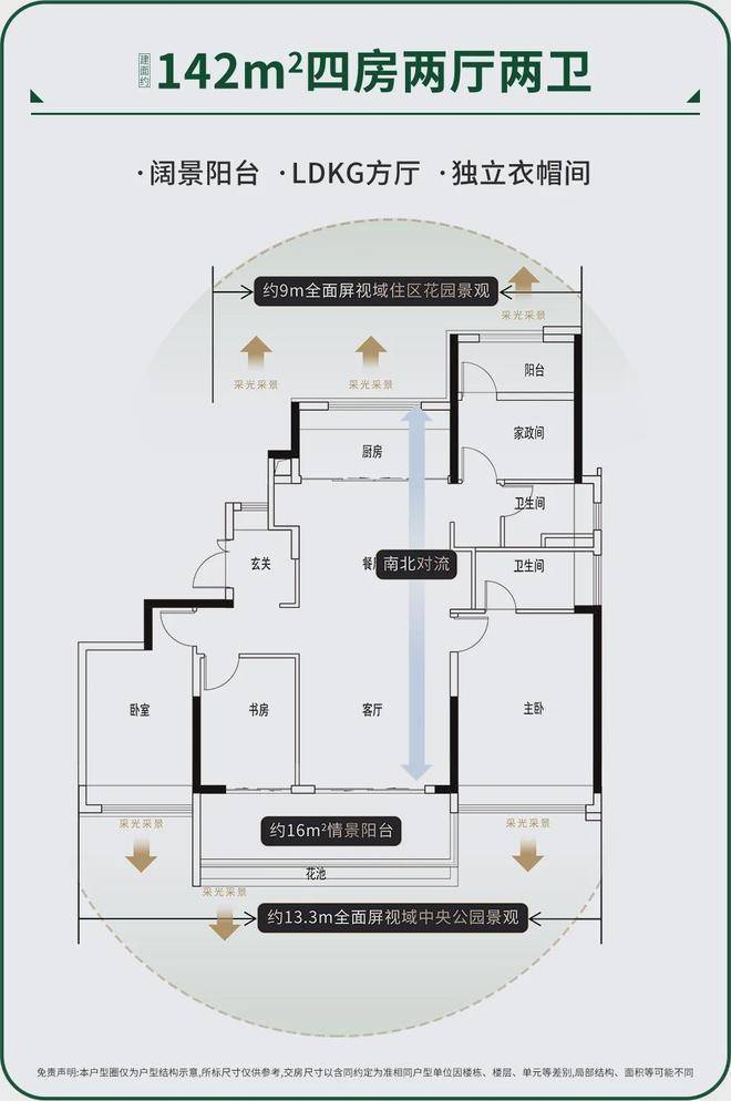 户型设计高端,主打低密板式设计,16 - 24 层小高层,专梯独户,T2/T3 布局,低密私密,减少用梯等候时间。全玻璃幕墙设计,与自然无界共融,消除建筑压迫感,结合大面积园林,提升居住舒适度。如面向中央园林一线楼栋,园林景观面达 280 米,让建筑与景观完美融合。