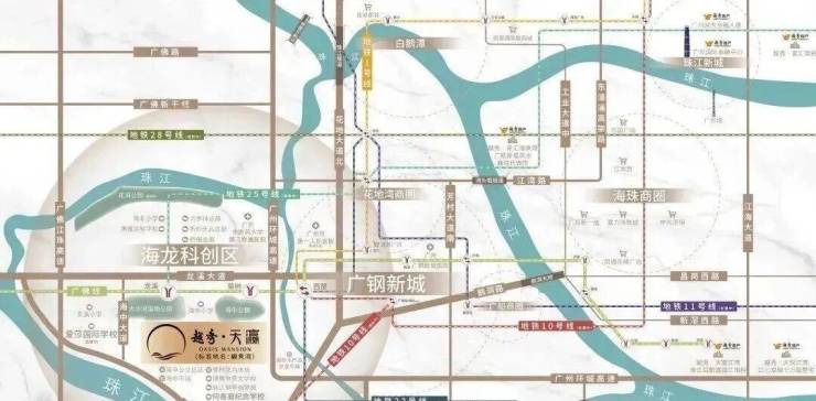 自驾:越秀·天瀛前面海龙路接驳各条高速,东接广州环城高速,西接广佛江珠高速,南接广台高速,距离荔湾核心聚龙湾约9公里,距离琶洲20公里,距离珠江新城20公里。