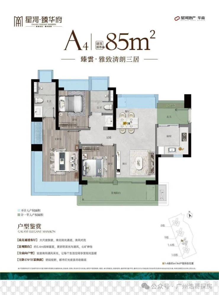 项目这次拿出了科学城罕见的优质户型!最大亮点就是“全南向”——不用担心选房,每一套都是客厅卧室全面朝南。户型尺度也很给力,建面约85~125㎡做三到四房,使用率接近100%,真正做到了又好用又舒适。