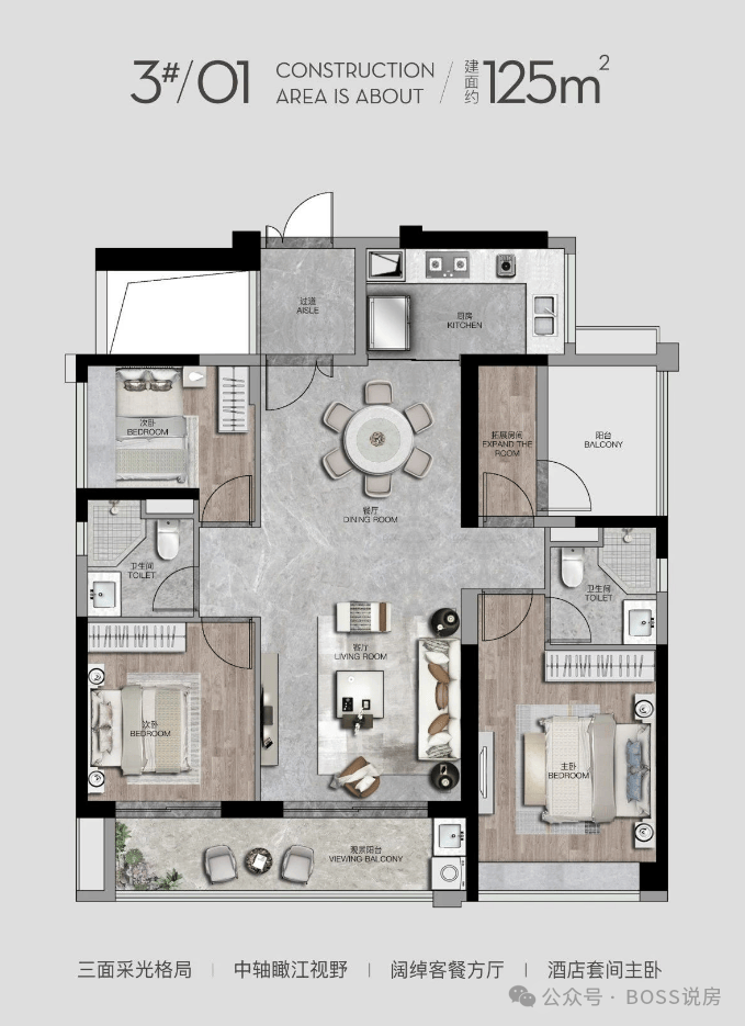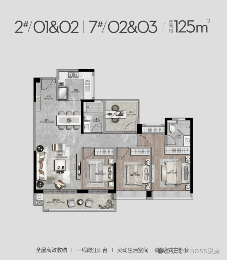 高端住宅:996套,约125-260㎡三至四房,2梯2户、2梯4户、3梯4户,带高品质精装修