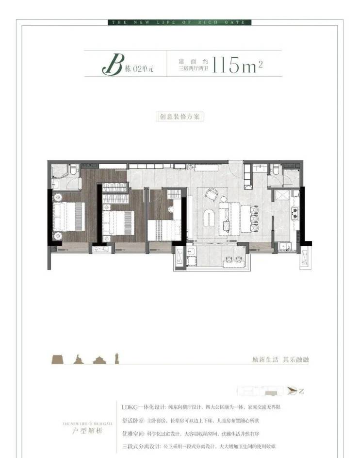 2梯3户全屋对流板式设计,通风采光俱佳,在城芯显得弥足珍贵;LDKG一体化奢阔大方厅、L型飘窗270°巨幕视野等设计,满足家庭成长的改善居住需求,诠释阔绰宽境大家风范。