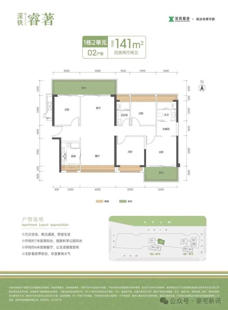 项目精筑建面约86-141㎡阔景三至四房,大部分户型双阳台设计,可瞰科学公园景观,以高品质彰显光明中芯区阔景臻质舒享家。