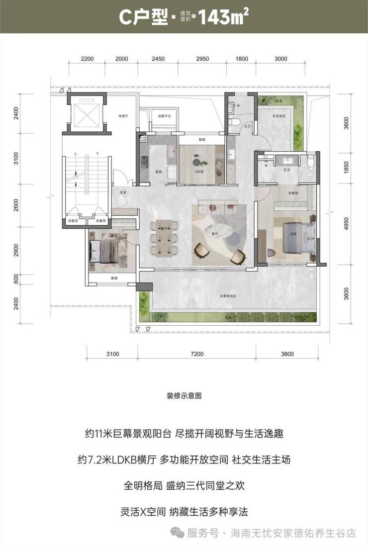 【面积区间】建筑面积约110㎡、131㎡、143㎡、195㎡