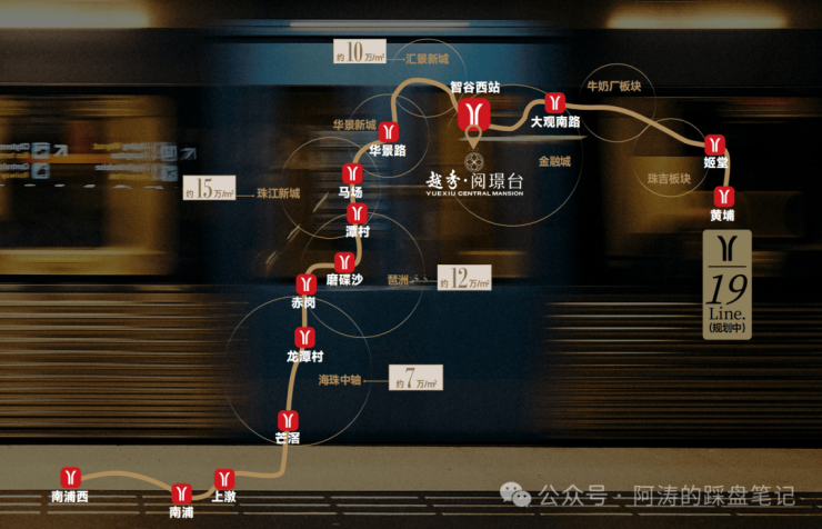 地铁19号线(规划中)烫平华景、汇景板块价值,串联“珠金琶”三大CBD核心板块