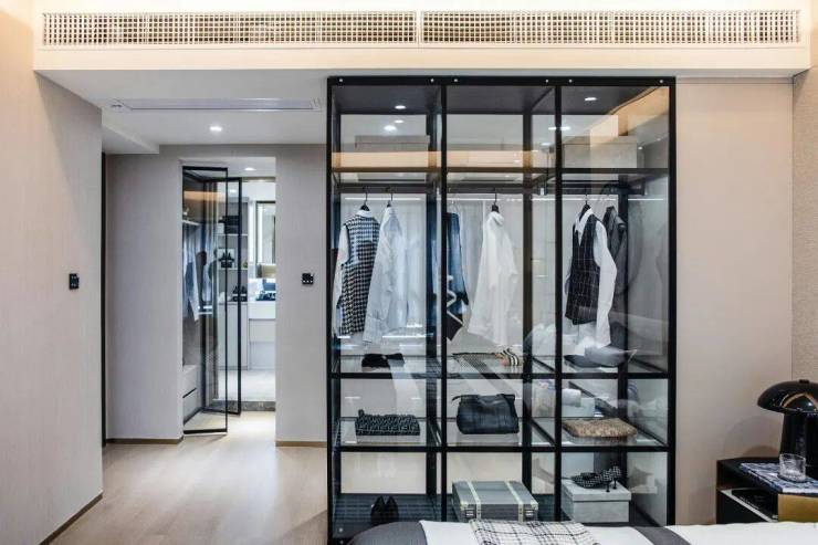 不同空间的衣柜都量身订造,标准化产品也有着打磨后的精致感。每一处都有着不同材质、不同功能、不同灯光等设计,为居住提供了更多的可能。