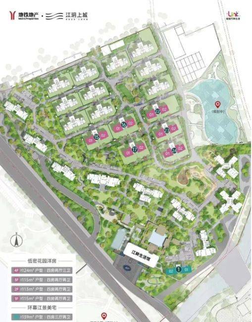 江玥上城位于白云区槎头板块、珠江前航道西岸,总占地约9.86万㎡,总建面约11.49万㎡,容积率仅1.18,为广州中心城区罕见的超低密社区。项目规划26栋住宅,涵盖小洋楼、塔楼、板楼三种形态,产品线丰富:
