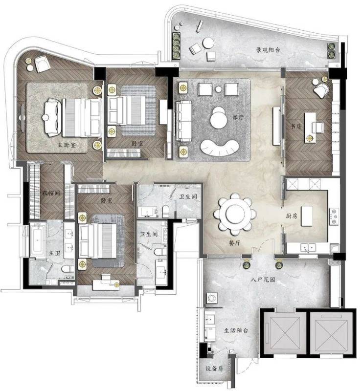 365㎡ 五房四卫+1工人套房,专梯独户
