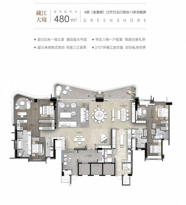 4️⃣480方均价13-15万左右 总价6000多 每栋只有2套大平层(验资1000万),13套左右