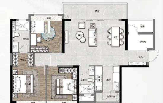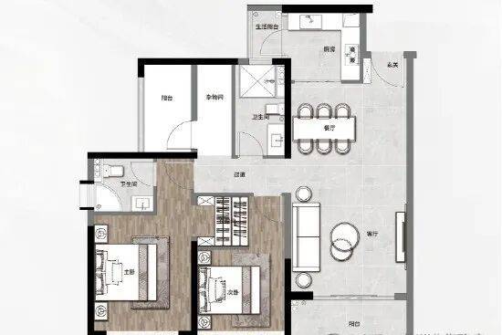 105㎡三房两厅两卫,板块内唯一纯南向且三开间朝南的三房户型