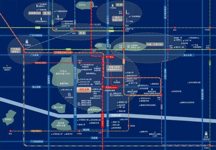 自驾方面,项目周边道路网络成熟,通过禺山路转至新光快速、东新高速和广台高速可快速连接广州核心商圈。