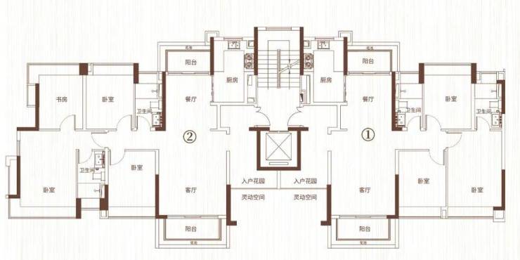 ①:117㎡四房两卫 ②:132㎡五房两卫