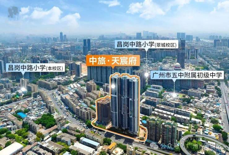 项目位于海珠区最强教育板块之一,根据海珠区教育局公布《2024年海珠区公办小学招生服务地段表》:中旅天宸府所属沙园街橡胶新村社区,约500米直距昌岗中路小学,符合就近入读条件。