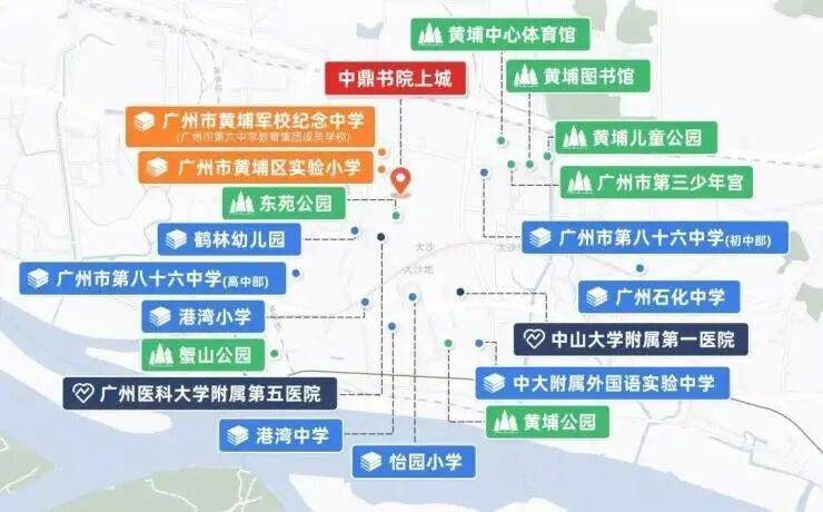 除了自配幼儿园,项目还对口广州市黄埔区实验小学、广州市黄埔军校纪念中学(广州市第六中学教育集团成员校),打通12年优质教育。