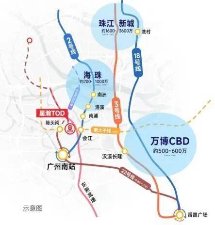 项目是地铁上盖楼盘,位于22号线陈头岗站上盖,四大地铁口通达小区,A2/B2出口与社区通道相连,归家出行不受天气影响。乘坐22号线转18号线快线,3站可到海珠,6站能达珠城;2号线会江站到南洲站也很便捷。22号线北延段4站直达白鹅潭,经广州火车站、彩虹桥可换乘1、2、5、8、9、11、13、14号线,畅达海珠、荔湾、越秀、天河、珠江新城等全市核心区域,预计2026年年底通车运营。此外,南大干线2023年9月全线贯通,距离万博仅一个红绿灯;东新高速25年10月已开通,可快速接驳荔湾核心;东晓南放射线预计25年11月开通,能速达海珠西。