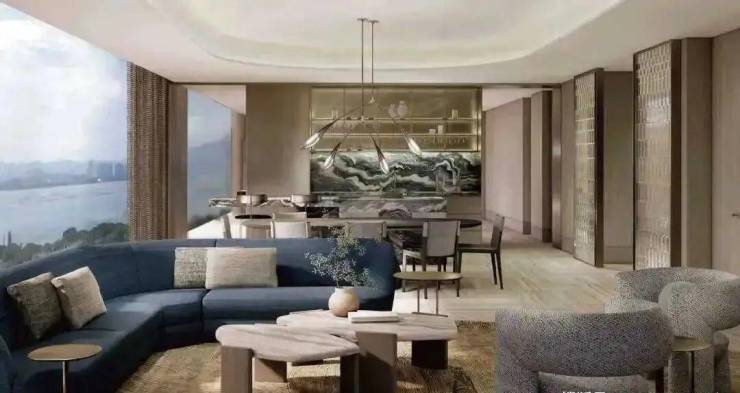 像TOA,在其设计的约303平户型中,实现了非常彻底的动静分区,且动区横厅LKD占了整屋过半面积,叠加主阳台直面深圳湾海景,通透感与景观张力一整个拉满,当自然景观和优雅的建筑风格和谐地融为一体时,置身其中感受到的是低奢静谧。