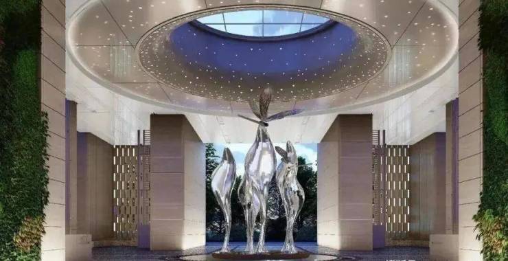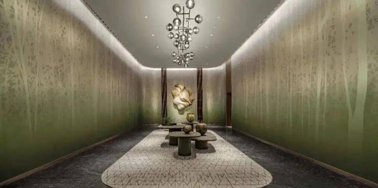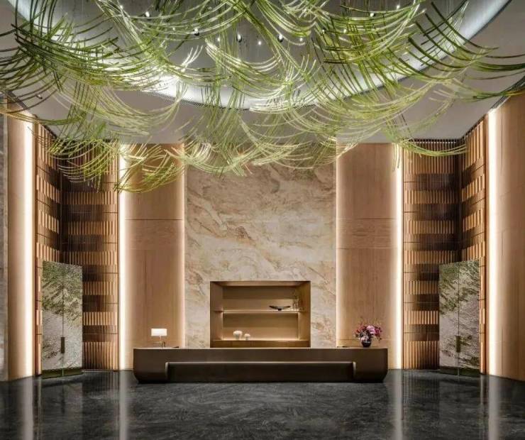 在这里能看到Yabu执笔的归家大堂、关永权定制的灯光系统,以及随处可见的克罗地亚杰拉贝石材等珍稀材料,建筑与空间呈现的艺术美学,构筑起了业主身份与品味的尊崇场域。