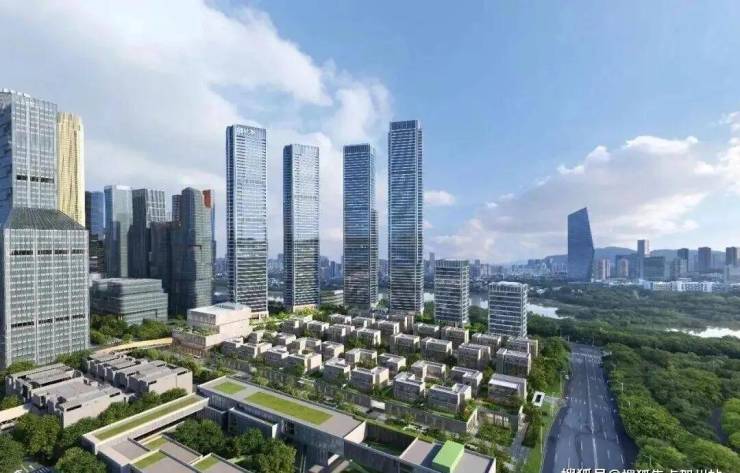 往西,是深超总国际总部建筑群和沙河生态公园。