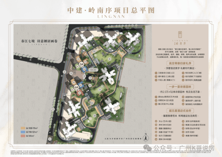 中建岭南序,共有9栋住宅。项目在售5/6栋(5栋46F、6栋32F)。